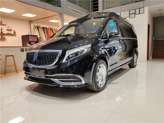 第三排采用迈巴赫62S航空座椅,座椅自带12项调节,通风,加热,按摩,记忆,舒适度十足,座椅两侧增加隐藏式商务桌板,保险箱等诸多功能。整个后仓进行红木打造,前后双电视系统。本款奔驰V260L堪称史上最沉稳大气的商务车