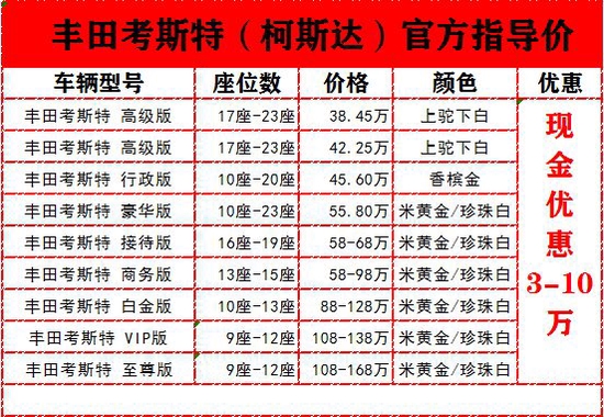 丰田考斯特宽敞的乘坐空间,再加上特殊的座椅定制,给乘驾人员舒适的旅行,其次从出行的目的上来说,这一种车型多是作为一种商务出行,可能随时会遇到一些临时的会议变动。再这样如此宽敞商务车里,我们可以集中所有的人员,办公的实用性较强。