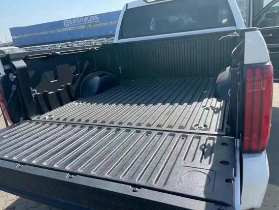 车身侧面部分,由于新一代坦途的定位并非是完全主打载货属性的产品。因此,它相较于一般货用皮卡,后斗会略微短一些;但这并不影响其显露修长的侧颜造型。并且,轮廓清晰的腰线,也能充分彰显其硬派皮卡的身份。