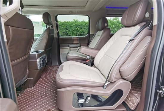 随着时代的发展,奔驰商务车已经满足不了有些家庭了,很多客户对车辆的动力要求都是比较的高,那么今天给大家介绍这款福特F150 (配置|询价)勇猛者平顶7座豪华商务车,无强制报废年限可以进市区,3.5V6发动机,381p马力,接下来给大家一一介绍。