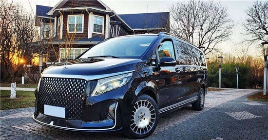 奔驰V260 (配置|询价)圣母峰现车这款奔驰顶商务车圣母峰全车定制了扰流套件,全新圣殿星慕格栅立体感十足,314颗烫银电镀,阳光照耀下非常闪耀;18寸定制悬浮锻造轮毂,轮胎尺寸235/50R18品牌型号为米其林静音轮胎。