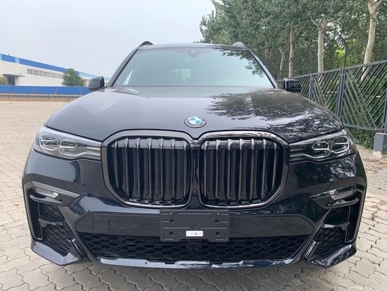 21款宝马X7 (配置|询价) 双肾式大尺寸前进气格栅,大灯的外部造型上面是更加的扁平化,内部的天使眼的大灯设计在设计上面是更加的抽象化和科技感,下方的保险杠以及整体的氛围营造也是在向着沉稳的方向过度的。
