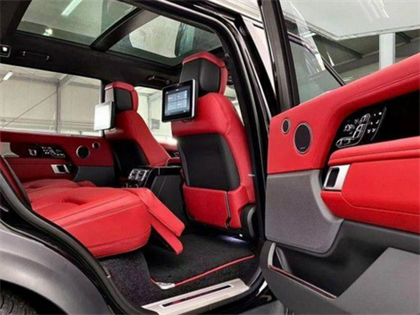 21款路虎揽胜创世加长真皮座椅很柔软,乘坐舒适,前后排座椅都装备了加热和通风功能。路虎揽胜行政版控制台顶端以及方向盘以牛津皮革包裹,无论是视觉效果还是质感都无与伦比。中央显示屏双画面技术可使驾驶者和乘客同时观看不同的画面。后排座椅还支持靠背角度调整功能,让乘坐在SUV中的乘客也能享受到轿车才独有的豪华配置。