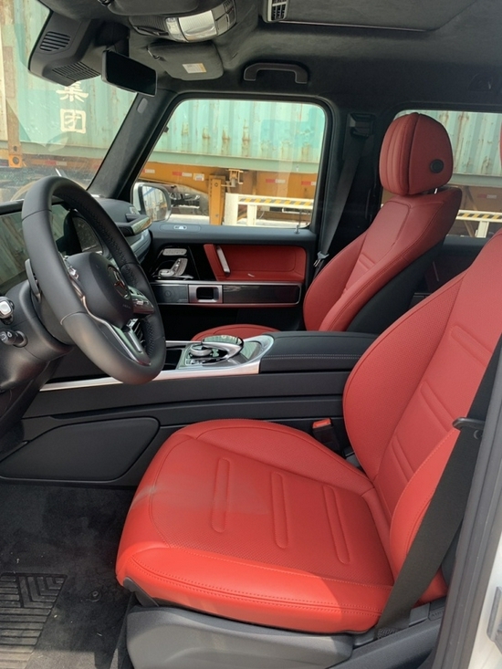 2021款奔驰G550车内采用深色调与桃木装饰,棕色真皮运动座椅非常舒适,方向盘以高档真皮包裹装饰,触感极其细腻。配有桃木装饰的操控台,稳重大气,同时提高了整体的质感。各种功能按钮应有尽有,丝毫不次于豪华轿车的功能。