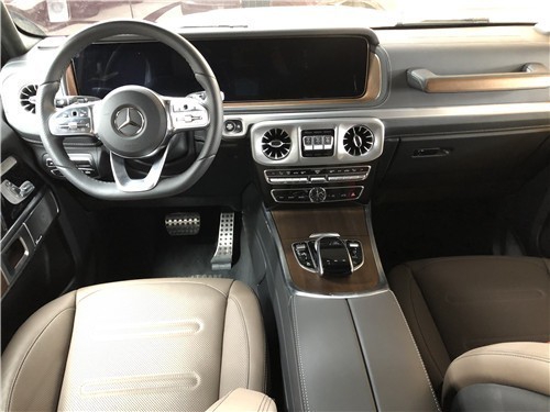 新款G500的内饰和作用一部分沒有发生改变,NAPPA皮的高級层次感,12.3英尺的双连屏,几何图形多光线LED头灯、柏林之声音响及其Mercedes me互连等配备也是一应俱全,也给这个硬派越野增加了一些时尚潮流与科技之感。