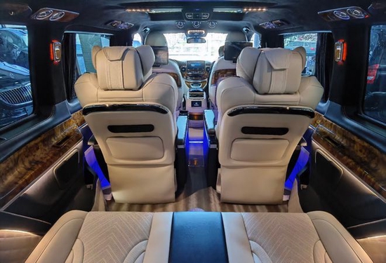 奔驰V260L改装迈巴赫VS660豪华多功能商务车的高品质内饰,将为您打造一处真正的家外爱巢。设计完美、外观独特的驾驶室,搭配拥有最佳质量的装饰材料。利用2个温控双杯座或冷藏箱,您可以在旅途中随时享用温度适宜的饮品。夜晚驾驶更是一种享受,奔驰V260L迈巴赫VS660商务车的环境氛围照明系统可以利用氛围灯带来无比舒适的照明效果。