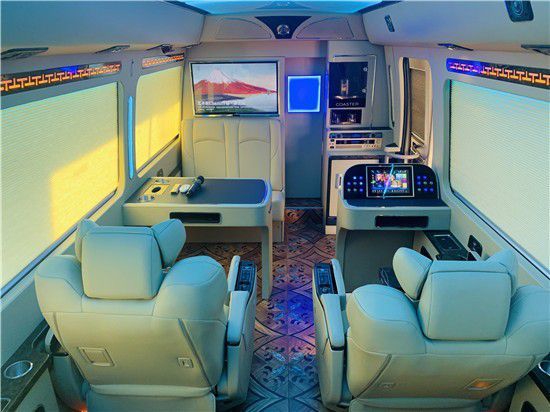 丰田考斯特12座改装商务车,从内饰的改装上更是有着许多独特的设计,座椅的舒适度与我们的乘车体验息息相关,所以,拥有一款舒适的在座椅是非常重要的,丰田考斯特12座改装商务车,在座椅的设置上可以根据我们自己的选择进行。豪华的真皮座椅或者是全进口的埃尔法 (配置|询价)座椅,丰田考斯特改装商务车能够满足我们的需要。同时,座椅上的通风加热或者电动脚托的设置,都让我们有了一个更加舒适的乘车环境。