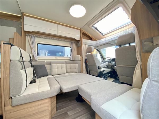 来到车厢内部,整体感觉非常的通透,内部的装饰风格也非常的豪华大气,车内还采用了独特的平面地板设计,免去了上下台阶的不方便,也可以避免老人小孩在这里意外跌倒,日常使用更安全。豪华正副驾驶座椅,副驾驶座椅可旋转,后仓L型座椅+单人座椅,采用高级磨砂皮料包覆,秒变2000*1400mm的L型沙发床,空间灵活变动。