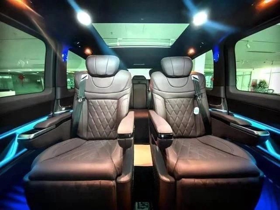 后舱三连座椅中间装配可以拆卸的小桌板,打造一个小型的会议场所。其次这款奔驰七座商务车的第三排是真的不错,空间上翘个二郎腿是完全没有问题的,另外可以通过它的中央扶手箱,可以将座椅慢慢180度平躺,变成一张简约的沙发床。把扶手放下来成两座放上去成三座在您累的时候还可以一件电动放倒成床在上方的睡上一睡都可以加上两侧隐私窗帘完全放心您车内的私密性且配有铝合金衣架可以放衣服本台奔驰威霆也是应有尽有打造一台高端商务。详情关注v x公众号:上海谊赫小夏说车