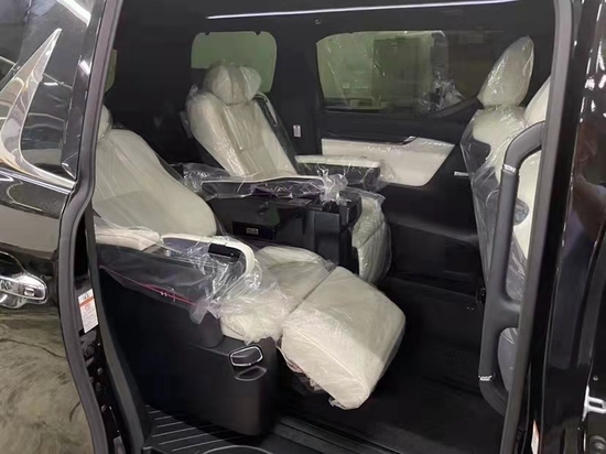 配置:木质内饰,三区自动空调系统,带记忆功能的8向驾驶员和乘客电动可调座椅,前后座椅空调,穿孔真皮半苯胺座椅,动态雷达巡航控制,木质方向盘,集成音频音量和模式、电话、语音识别、MID、LTA、DRCC控制,电动后门,电子动力转向系统(EPS),电动滑动和自动简易关闭后门,双动力月台,带加热器、存储器、盲点监视器和倒车功能(带摄像头)的可伸缩侧后视镜,表(仅适用于7座车型),冰箱(仅限4座车型),分离器(仅适用于4座车型),带导航功能的12.3英寸电子多视(EMV)显示屏,Mark Levinson参考环绕声音响系统具有蓝牙功能和USB/音频迷你插孔,苹果Carplay和安卓汽车,后座娱乐系统