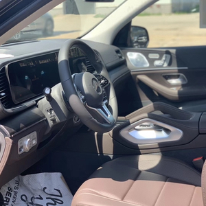 22款加版奔驰GLE450 内饰则延续了现款S级 (配置|询价)的造型,用的是贯穿式中控台双屏设计,12.3英寸的双液晶显示屏带来的科技感爆强,并且搭载了奔驰最新的MBUX人机交互系统,采用搪塑,皮革,实木,金属和碳纤维材质,三幅式底方向盘动感十足,头顶一个全景天窗,座椅用的是双色搭配的运动风格座椅,舒适性和包裹性也比较好。