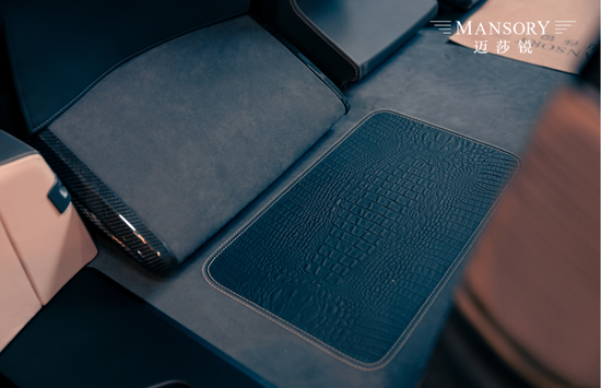 就连麂皮绒脚踏板的外沿也用碳纤维做了包覆,MANSORY对碳的执着早已深入骨髓,独具匠心的工艺水准令人由衷钦佩。