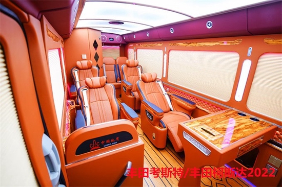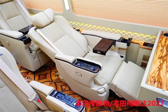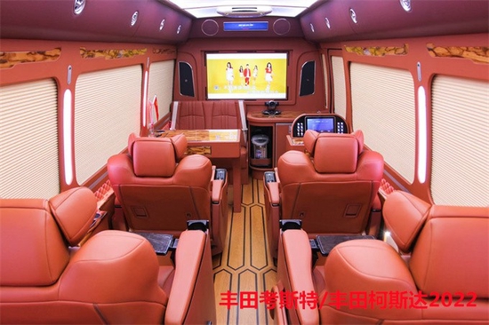 丰田的考斯特可以在隔断的中间增加电动门,便当来回的互换与沟通。在驾驶舱与乘客车厢中间增加隔断不单仅是为了车内构造的雅观。丰田的考斯特办公桌可以选择真皮包裹桃木的商务办公桌,也可以选择带有升降电视的豪华办公桌,再或是定制的智能办公桌。丰田的考斯特选用了高端音响系统,按照家庭影院音响系统设计,专注于杜绝噪音和消除震动构筑出合适高保真音响系统的完美环境,支持多声道环绕声效果,给乘客带来视觉与听觉十分冲击的效果。丰田的考斯特在内饰地毯的设计上丰田考斯特改装商务车也有很多不同的方案设计蓝色的地毯设计大气端庄。红色的全车地毯增加彰显独特和尊贵,而车内的设计上还可以选用豪华的游艇木地毯,大气大的设计展现内饰的独特和尊贵。