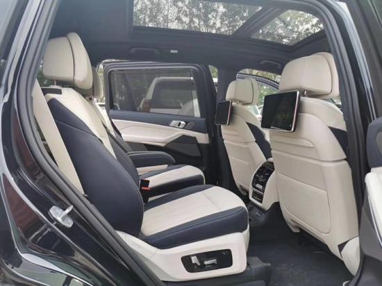 宝马X7将会提供6座和7座两个版本,座椅布局分别为2+2+2、2+3+2,其中6座布局第二排座椅可选装类似头等舱的豪华座椅。此外,新车还搭载了三段式天窗,其中第三排上方为独立式设计。后备厢门开启方式与X5相同,为上下分段式开启。