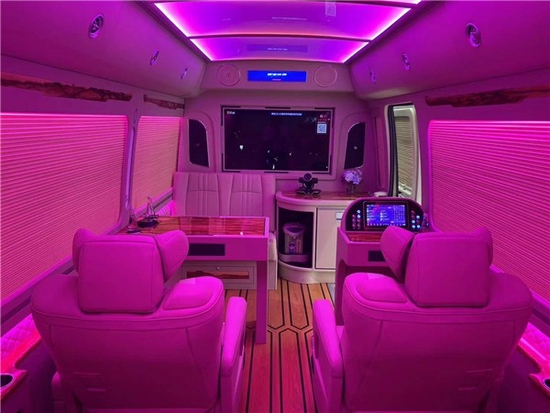 丰田考斯特13座改装商务车,在内饰灯光的选择上也有着许多独特之处,车内加装豪华的A380顶,各种灯光的设置可以随心而定,橙色的灯光显示出宁静,蓝色的灯光展示出浪漫,粉色的的灯光给人以温馨,紫色的灯光展示出绚烂,丰田考斯特改装13座都可以在设置上满足我们的需求。