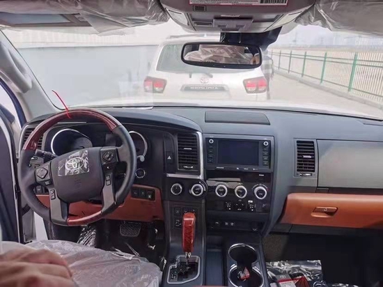 2022款新款丰田红杉5700采用了金属装饰条及桃木装饰的点缀也为整车增添了几分豪华感,不足的是车内部分做工和用料方面略为稍逊,可能由于红杉产地是美国的缘故,真皮方面盘上下两段分别采用了桃木材质,握感不错,并且带有电动四向调节,其中多功能按键分布在方向盘左右两侧,诸如音量调节、语音通话、电话接听等功能都可以通过快捷链来操作完成。