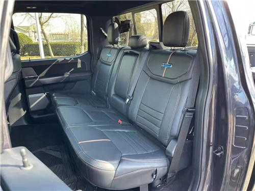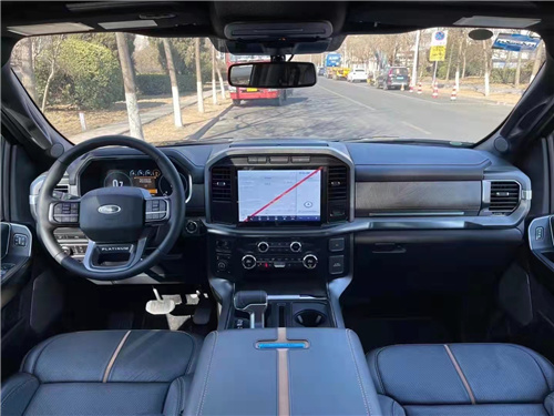全新福特F150白金版中控功能区域可分为三个小控制区,最上端为音响控制及导航控制,中间为收音机调节控制,最低端为空调及座椅加热控制,在内部空间的庞大基础上,福特也提供了非常具有舒适性与服务性的内饰配置,另外,新车还配备了一块大尺寸的全景天窗。