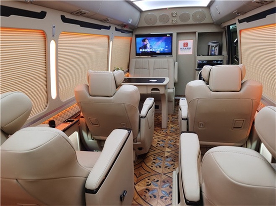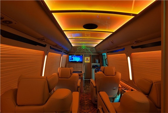 丰田考斯特12座豪华接待版,这是性价比比较高的12座商务车型。全车真皮包裹和桃木装饰,与A380空客顶灯共同营造了一个豪华舒适的办公氛围。超豪华的原装进口埃尔法航空座椅和双人汇报席,定制的高端桃木办公桌和秘书席一起构建了满足商务活动的办公场所。除此之外,高端的影音一体化系统,进口英德尔冰箱和虎牌电热水壶也能满足商务活动之外的休闲娱乐活动。