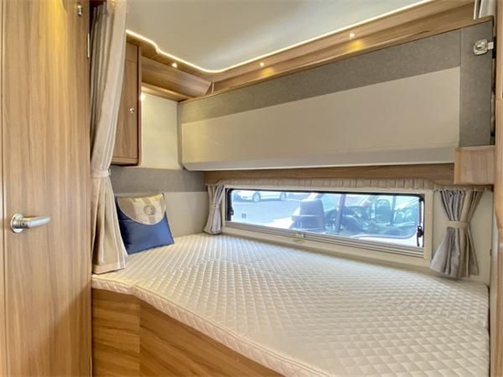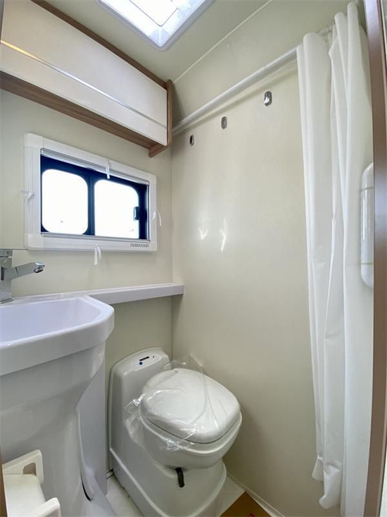 尾部纵向子母床,下部1100*1900mm可供两人休息,上床750*1900mm可自由翻折,休息也好,储物也好,都能胜任。床铺采用优质的舒适床垫进行打造,保证水面的体验。同时,还配备了侧窗以及窗帘、隐私床帘等,进一步保证车辆的起居体验。