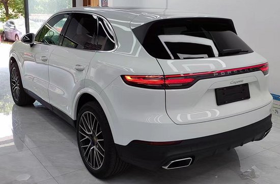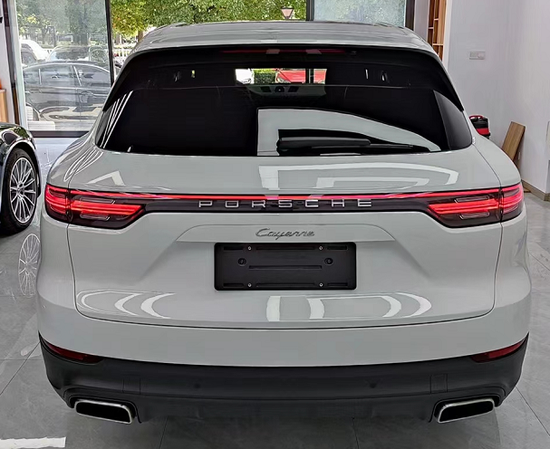 尾部采用了贯穿式的尾灯设计,并且两侧的尾灯采用的是双层结构的光导式尾灯设计,外面使用的是透明的灯罩,一体感,豪华感很强烈。在保险杠位置,采用的是黑色的塑料板加镀铬饰条的排气管进行装饰,说实话比较的普通。就整个卡宴的外观设计来说,并没有过多装饰或者故意炫技的成分在内,简简单单的保时捷家族设计,但是依然可以卖得相当不错。