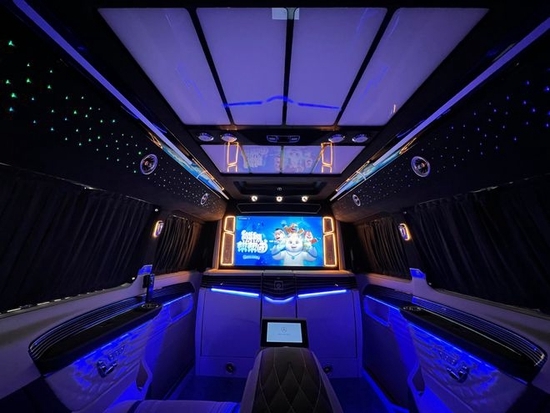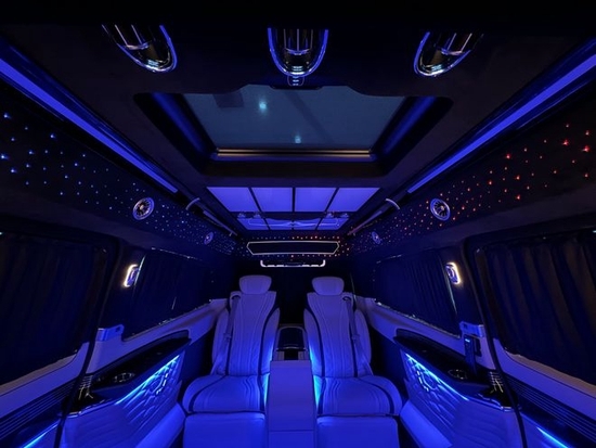 奔驰迈巴赫vs680商务车后排的星空顶,氛围灯让整车充满了奇幻浪漫的气息,星空顶还可以切换各种颜色,内饰用料及做工达到顶尖豪车水准,集舒适、配置、娱乐于一体,旨在为尊贵的车主打造高端、高品质的接待与移动办公出行。