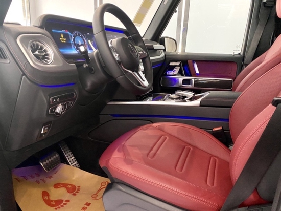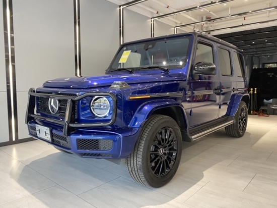 21款美规奔驰G (配置|询价)550 颜色:神秘蓝/红 配置:自适应阻尼悬架,轮毂锁,加热方向盘,黑色备胎罩,四季地垫,20寸多幅AMG轮毂,纳帕真皮方向盘,Gmanufaktur内饰包(Nappa座椅,Nappa真皮仪表盘,多轮廓按摩通风快速加热前座椅,GManufaktur副驾扶手标志,Dinamica顶篷,) AMG外观包(AMG车身外观、轮拱,AMG卡钳,铝制前防撞杆,运动排气系统),暗夜包(熏黑保险杠,熏黑外观套件,熏黑前后灯)