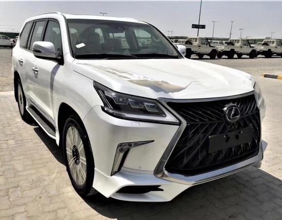 21款中东版雷克萨斯LX (配置|询价)570 MBS四座 配置:黑色外后视镜,独立4座控制、MBS多轮廓座椅(菱形格子走线)、金属漆、黑色前中网、前后大包围、射灯、21轮、遥控启动、车身防擦条、流水式转向灯、带运动底盘、运动模式、换挡拨片、冰箱、天窗、智能卡、电眼、环影、后娱、底盘升降、前座椅通风加热按摩、半苯胺真皮、导航、桃木多功能方向盘、桃木内饰、铝制行李架、航空照明脚踏、LED 氙灯 大灯清洗、迎宾灯、四区空调、电尾门、ACC自适应巡航、雷达测距、后座椅通风加热按摩、后排储物格、车道保持、二排遮阳帘、抬显、马克莱文森音响。