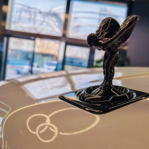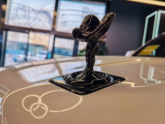 劳斯莱斯库里南Black Badge车型最具辨识度的特征——欢庆女神的塑像变成了通体黑色。车头、侧翼、后进气道处的双R标志变成了黑底银字,前格栅边框、车窗边框、行李厢把手、行李厢下沿饰条、下进风口以及排气管等均变为黑色。格栅中间的竖杆是黑色,但每一根都经过打磨抛光,变得格外动感。