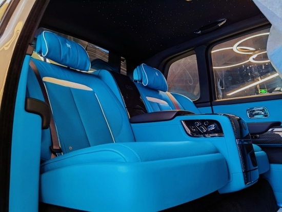 劳斯莱斯库里南后排3座及2座独立座椅设计,沙发一般的座椅采用真皮包裹,配合更加松软的头枕,让劳斯莱斯的奢华体验更加丰满。其中,四座版车型采用了大尺寸的中央独立扶手,并可根据需求进行定制,例如增加冰酒柜、后排桌板、娱乐设施。