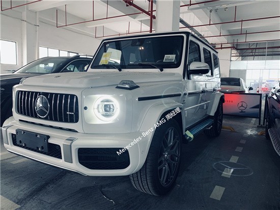 22款奔驰AMG G63 (配置|询价)白色现车它硬朗的方盒子造型,没有多余的弧度、没有任何曲线,眼光所及满是平直锋利的线条,就连车顶上的导雨沟槽,也是沿着车顶周围一圈,分外焊接上去的金属槽,车门搭钮更是绝不虚 心,硬挺挺 地屹立在 门缝之外,外凸 的轮拱、造 型如同 梯形的引擎盖。