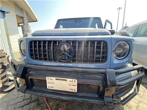 这款车就是全新的22款奔驰G63 (配置|询价),正面上的进气格栅依旧是奔驰G (配置|询价)家族式的风格,简单但不失霸气,两侧的炮眼大灯基本上秒杀统计人的任何车辆,而这组大灯则是由银色的日间行车灯所包围,霸气的前包围也彰显出了这部车的硬派感。