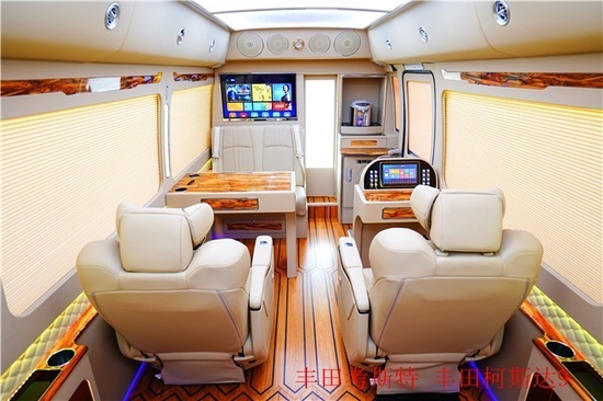 丰田考斯特 (配置|询价)改装商务车在内饰的改装上增加了其他的装饰,考斯特改装商务车窗帘的改装上可以有不同的方案,我们可以选择布艺豪华窗帘,也可以选择百褶窗帘。百褶窗帘也可以选择手动和电动这两种启合方式。在地毯的设计上我们可以选择通道地毯或者全局的木质地板,不一样的风格根据我们的需要进行选择。商务活动为我们提供更多的机会,我们在行车的过程中也更加注意行车的安全和舒适。丰田考斯特改装在车内设置音响等影音装备。给我们的行车带来更过的愉悦环境。风头田考斯特17座19座内饰改装的独特人性也是其能够在商务车的市场上有所发展的最基本原因