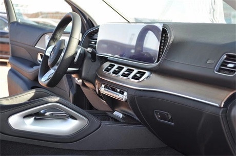 21款奔驰GLE450用的是贯穿式中控台双屏设计,12.3英寸的双液晶显示屏带来的科技感爆强,并且搭载 了奔驰最新的MBUX人机交互系统,采用搪塑,皮革,实木,金属和碳纤维材质,三幅式平底方向盘动感十足,头顶一个全景天窗,座椅用的是真皮搭配的运动风格座椅,舒适性和包裹性也比较好。