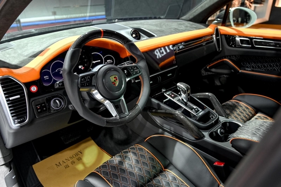 相比外观,迈莎锐卡宴的赛车级内饰工艺也是精雕细琢:全车隔音隔热降噪处理;座椅采用Mastrotto小牛 (配置|询价)皮打造;车顶、内壁地板、后备箱等区域精选意大利Alcantara环保麂皮绒,配上随处可见的碳纤维装饰件和热情跳跃的橙色高工艺编织线,迈莎锐卡宴完美诠释了什么叫精奢与运动共存。