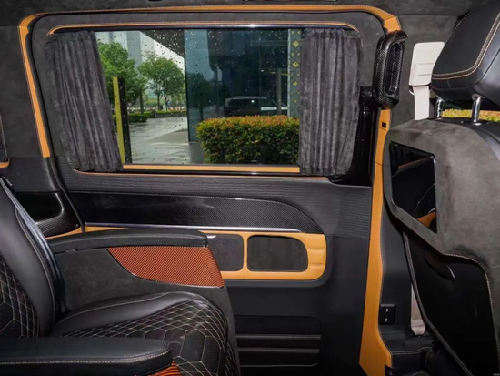 MANSORY迈莎锐无疑是这个世界上最懂得运用材料领域“黑色黄金”—碳纤维去烘托车辆个性魅力的“改装艺术家”。针对MV600誉金,“碳纤之王”使用大量T70航空级金线碳纤维打造出全套空气动力学宽体组件拓展前、后大包围。经过“金碳化”处理的引擎机盖、前唇、前保险杠带进气口、雾灯罩、后视镜壳等部位无一不让观摩者品鉴到一种前所未有的精致典雅。而库里南 (配置|询价)同款“帕特农神庙”格栅,更是让MV600誉金的欧式尊贵跃然于表。迈莎锐MV600誉金车身线条直流畅,侧裙、翼子板扰流饰件、门把、窗框等部位也都用上了稀有的金线碳纤维,时尚优雅不彰自显;车尾设计硬朗方正,底部左右对称的梯形排气孔庄肃工整而又不失动感时尚;后保、尾翼、后置扩散器等区域也都无一例外释放着浓郁“碳香”。在带MANSORY飞翼悬浮盖的19寸N·80多幅运动轮毂以及低胎噪比的米其林轮胎映衬下,车主的过人身价、品味显露于无形。