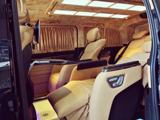 奔驰V260在内部装潢上也进行升级,车体提供真皮、Alcantara以及木材和碳纤维多种材质可供选择。而MPV车型看中的合金踏板、合金门把手以及内装台板等这款车都有所配备。科技配置还有AppleTV、两个独立15.6英寸显示屏、蓝光播放器以及DVB-T信号接收系统等。