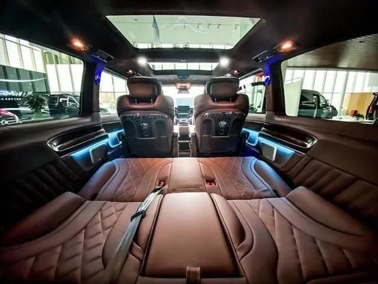 后舱三连座椅中间装配可以拆卸的小桌板,打造一个小型的会议场所。其次这款奔驰七座商务车的第三排是真的不错,空间上翘个二郎腿是完全没有问题的,另外可以通过它的中央扶手箱,可以将座椅慢慢180度平躺,变成一张简约的沙发床。把扶手放下来成两座放上去成三座在您累的时候还可以一件电动放倒成床在上方的睡上一睡都可以加上两侧隐私窗帘完全放心您车内的私密性且配有铝合金衣架可以放衣服本台奔驰威霆也是应有尽有打造一台高端商务。详情关注v x公众号:上海谊赫小夏说车