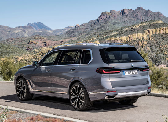 作为一款旗舰级SUV车型,宝马X7 侧面气场是很足的,就算对比国内华晨宝马国产化之后的拉长宝马X5 (配置|询价),也能明显感觉到气场差异。车尾灯光造型倒是没有太激进,还是熟悉的L形。