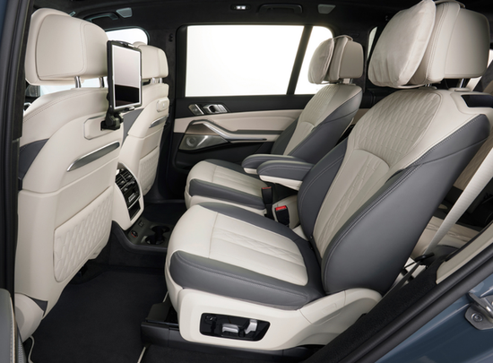 宝马X7两块屏幕尺寸不一样,液晶仪表12.3英寸,导航娱乐屏幕则是非主流14.9英寸,而且中间是有隐藏夹角的,中控屏其实偏向于驾驶员视线角度。后排乘客还可以享受到独立的多媒体屏幕,第2排两个独立座椅更是有类似MPV的调节舒适功能。