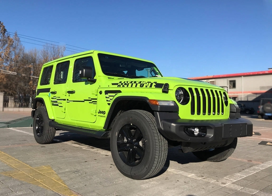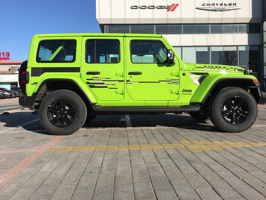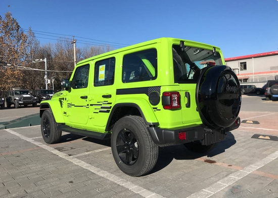 2022款牧马人高地版阿拉斯加极光绿色到店!炫顶外观,混凝土灰与反射银结合的动感条纹贯穿车身,时尚潮流元素完美融入Jeep经典的功能主义风格。