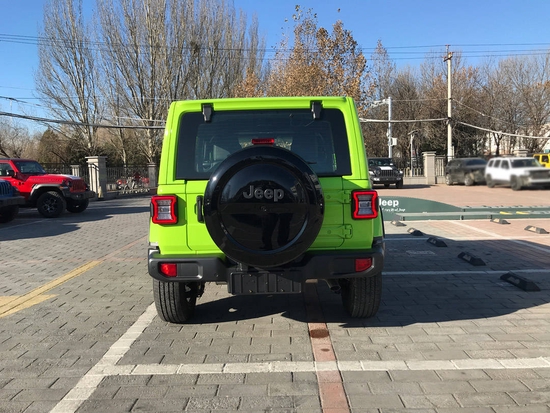 2022款牧马人高地版 阿拉斯加极光绿色到店,配备钢琴烤漆黑硬质备胎罩,兼具保护性和美观