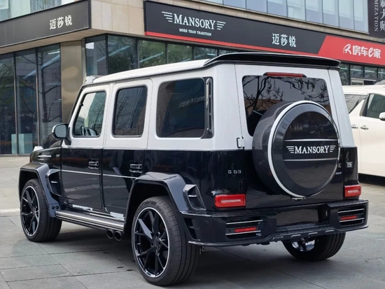 视角转向车身,可以看到“白加黑”G63的宽体轮眉带出风口、翼子板扰流件、侧裙、后视镜壳、门把等部位皆采用黑线碳纤维打造,视觉效果较原厂更为动感立体,前所未有的奢雅大气以及跃然于表的青春运动氛围令人心中明快豁然;MANSORY迈莎锐专属搭配的23吋YN·5钻石黑全锻轮毂内置深红色巨大卡钳,更是将这台G63热血战斗氛围渲染得彻彻底底!