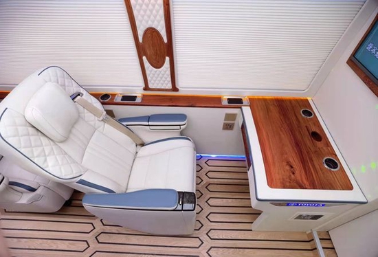 车内的配置非常的齐全,拥有28英寸的智能网络电视、移动的K歌系统、酒柜、烧水壶、车载冰箱等。让您在车内就可以享受到移动包房、茶室等。联系电话:18812637416刘经理 (同号微信)满足车内乘坐的各位大佬的多重需求!车内拥有五张独立的VIP航空座椅,为同款的埃尔法第二排座椅!舒适性不用多少,给大佬都是亲身体验过的!