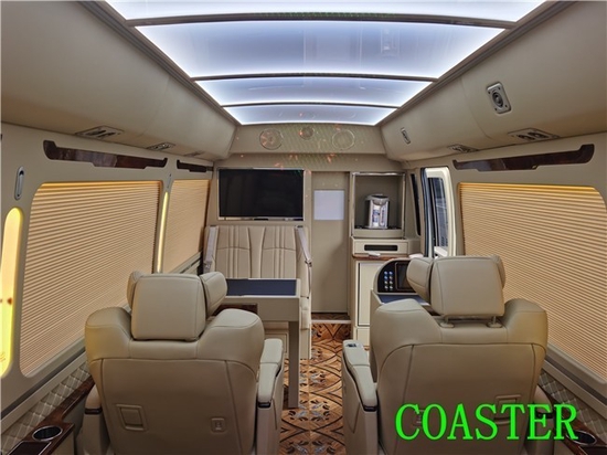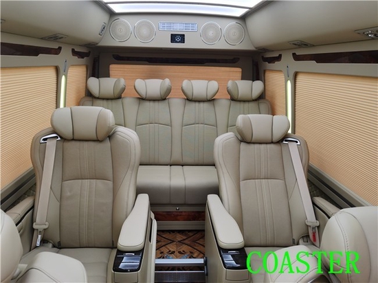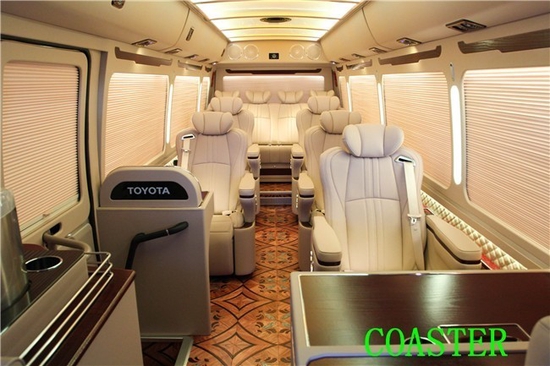 窗帘的选择上我们可以选择豪华的布艺窗帘,也可以选择舒适的百叶窗帘,百叶窗帘可以选择是手动的还是自动的,加装窗帘装饰框等等,都可以根据我们自己的需要进行选择。在地毯的选择上,我们可以选择通道地毯,或者全车都加装木质地板,这也是我们根据自己的风格进行选择。丰田考斯特改装商务车,11座12座13座虽然在座位的数量上有所不同,但是内饰上的改装却是可以随心而定的,因为在丰田考斯特改装就是成功企业成功男士的高级私人订制,有人说乘坐 丰田考斯特的人都是非富即贵,这句话并不是说,丰田考斯特改装商务车的价格有多高,而是因为丰田考斯特改装商务车被作为商务车接待以及政府接待已经非常普遍,所以才会有了这样的一个说法,丰田考斯特改装商务车,你的私人订制,高贵和成功的标志。