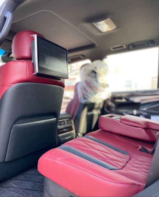 21款雷克萨斯LX570 八座后改MBS四座 配置:黑色外后视镜,独立4座控制、MBS多轮廓座椅(菱形格子走线)、金属漆、黑色前中网、前后大包围、射灯、21轮、遥控启动、车身防擦条、流水式转 向灯、带运动底盘、运动模式、换挡拨片、冰箱、天窗、智能卡、电眼、环影、后娱、底盘升降、前座椅通风加热按摩、半苯胺真皮、导航、桃木多功能方向盘、桃木内饰、铝制行李架、航空照明脚踏、LED 氙灯 大灯清洗、迎宾灯、四区空调、电尾门、ACC自适应巡航、雷达测距、后座椅通风加热按摩、后排储物格、车道保持、排遮阳帘、抬显、马克莱文森音响。