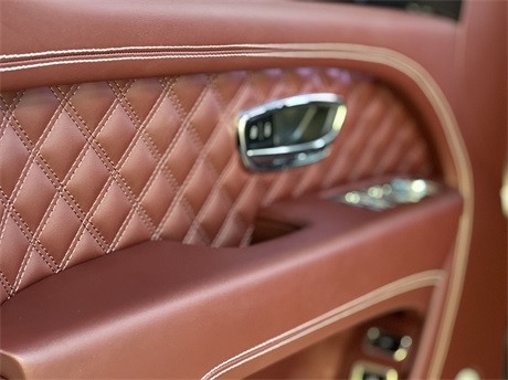 21款宾利添越3.0内饰由英国克鲁工厂纯手工完成,用料做工极为考究,座席肩部钻石纹绗缝工艺,剪裁精巧,座席之上刺绣宾利徽章所洋溢的对称风格设计,庄重而别致。最上方的这块石英表做工足够精致,传统钟表在车内出现更多的作用就是提升品位。