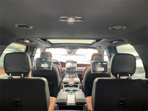 全新21款林肯领航员的内饰非常奢华,多功能方向盘,中控台的造型与宽大的车身相呼应,新车全部真皮包裹座椅,内饰采用桃木搭配设计,高贵典雅,加高加大的车身除了增加内部空间外,还给人营造一种尊贵典雅的感觉。最新林肯领航员新车采用了2+2+3的座椅布局,第二排采用了两个独立座椅,座椅内侧均配有扶手,舒适度超强。