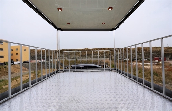 会客区真皮软包对卡座沙发满足4人乘坐,卡座沙发搭配气动升降餐桌可变为一张沙发床。固定式安全带保护行车途中乘客的人身安全。坐垫厚实,弧形靠背也提供一定的支持感,整体来说乘坐舒适感还是不错的;沙发内侧墙壁2个独立外推窗,提供采光及通风换气效果;三菱重工变频空调(单冷)制冷效果快,可手动调节温度,吊柜方便日常收纳物品。本款房车是越野专用方舱,热断桥硬化铝骨架六层加强保温车身,厚度60mm,耐零下30度。标配400L清水、1600AH锂电、德国纽福克斯3000W+3000W逆变器(防辐射处理)等。