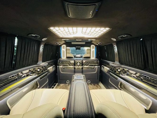 奔驰V260L改装四座版 奢不奢华看内饰。奔驰V260L改装高顶MPV 精品改装不容错过,奔驰V260L商务改装案例 打造极致动力商务车,奔驰V260L改装四座,奔驰V260L改装六座,奔驰V260L改装百万豪车品作为高端汽车品,其公信力自不必说,历经百年的积淀以及对于汽车品质和汽车科技的不断开拓创新,让奔驰汽车时刻走在豪华汽车的前沿。奔驰V260L的星徽标昭示的是身份、更是对于高端座驾的崇尚。奔驰V260L黑钻版商务车外观造型依旧延续V级车科技、时尚的设计,星徽标内置有ACC自适应巡航的探测器,下方有360度泊车摄像头,后视镜除可以电动折叠加热以外,还有盲区提示功能,动静之中让科技为您保驾护航。18寸的多幅式铝合金轮毂上面选用的是马加厚轮胎,对于震动的过滤以及静音性都更好。