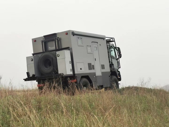 全新国产重汽越野房车豪沃全国首发国产越野房车豪沃的箱体豪到没朋友,箱体为断桥隔热结构,墙体三明治结构厚度为65MM,外蒙皮为德国品牌超高强度玻璃钢板材,内层为德国品牌玻璃钢内饰板材,保温隔热强度相同二四砖墙。豪沃越野房车车窗采用诺马迪森专属车窗,配英国品牌遮阳帘和防蚊网。尾部18500T-MAX 24伏电动绞盘,备胎电动挂在系统,加挂两个外部储物盒。